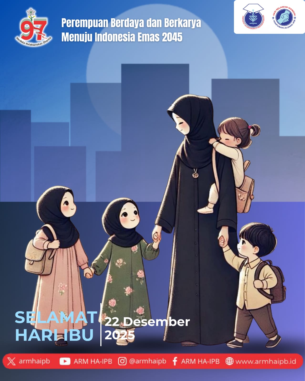 ARM HA-IPB berkomitmen untuk terus mendukung peran ibu dalam membangun keluarga tangguh bencana. Kami berharap ibu-ibu di Indonesia terus menjadi inspirasi bagi anak-anaknya dan masyarakat sekitar, dalam menciptakan lingkungan yang aman dan masyarajat yang senantiasa memiliki kesiapsiagaan tinggi menghadapi bencana.